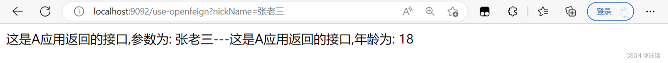 @FeignClient("a") public interface AServiceClient { @GetMapping("/a/test") String test(@RequestParam(value = "name",required = false) String name); }通过B应用,使用OpenFeign方式调用a服务