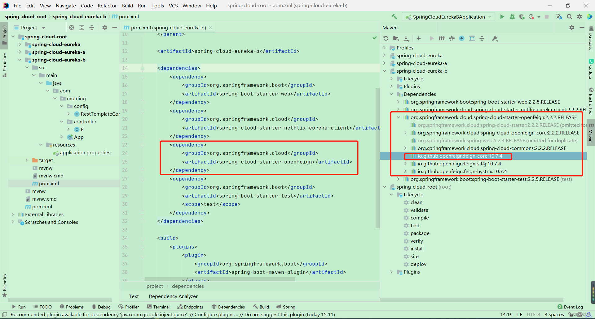 在子模块spring-cloud-eureka-b的pom.xml中添加依赖