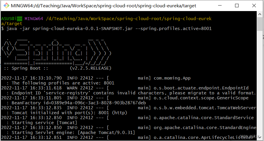 java -jar spring-cloud-eureka-0.0.1-SNAPSHOT.jar --spring.profiles.active=8001 java -jar spring-cloud-eureka-0.0.1-SNAPSHOT.jar --spring.profiles.active=8002