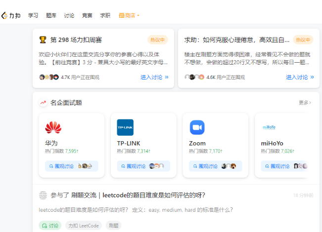我刚开始刷算法题的时候,就选择在力扣上刷。最初刷easy级别题目的时候,都感觉有点吃力,坚持半年之后,遇到中等题目甚至hard级别的题目都不慌了。