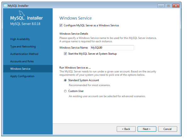 ² Windows Service Name:服务名称,采用默认名称MySQL80即可。