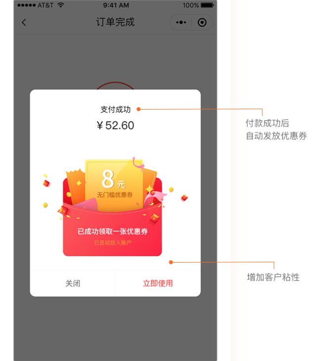 可以让用户分享小程序给微信好友或微信群,这是吸引新用户的最快方法。除此之外,朋友圈也是很有效的方法。