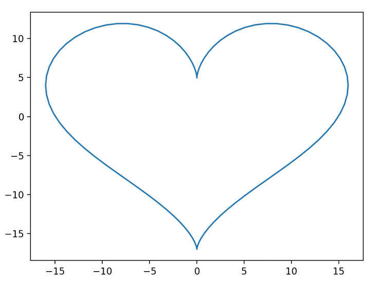 计算出不同角度对应的点坐标,然后把它们连起来,就是一个爱心。