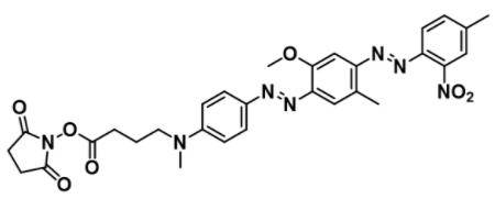 BHQ-1的吸光度为534 nm,有效吸光度范围为480-580 nm。这是用于与荧光染料配对的猝灭剂,荧光染料在可见光范围(519-556 nm)的黄绿色到黄色部分发射。这个这组染料的发射光谱与BHQ-1的吸收光谱充分重叠,从而使后者能够淬灭染料前者荧光***。