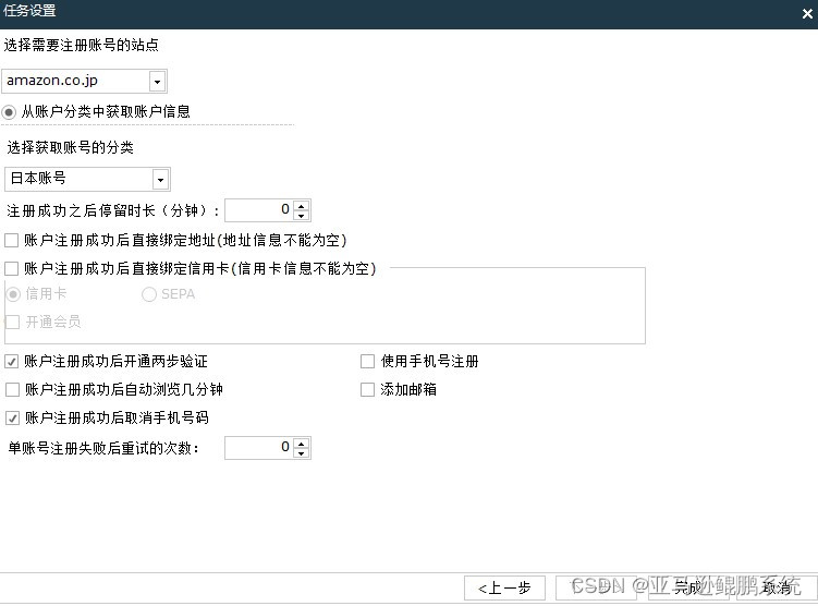 想要批量注册账号,可以使用亚马逊鲲鹏系统进行操作,准备好以上相关资料后,按照软件所需要的格式添加进软件里面,然后运行注册功能进行全自动操作,软件程序可以自动输入账号密码信息、自动接收验证码、自动绑定收货地址及支付卡。账号窗口支持多开同时运行,因为软件内置了防指纹技术,可以根据IP给每个账号创建不同的运行环境,这样每个账号独立运行就不会造成关联。账号多开运行后,注册的更快,只要账号资料没有问题,一天注册几百个账号都是可以的,很适合需要大量买家号的朋友。