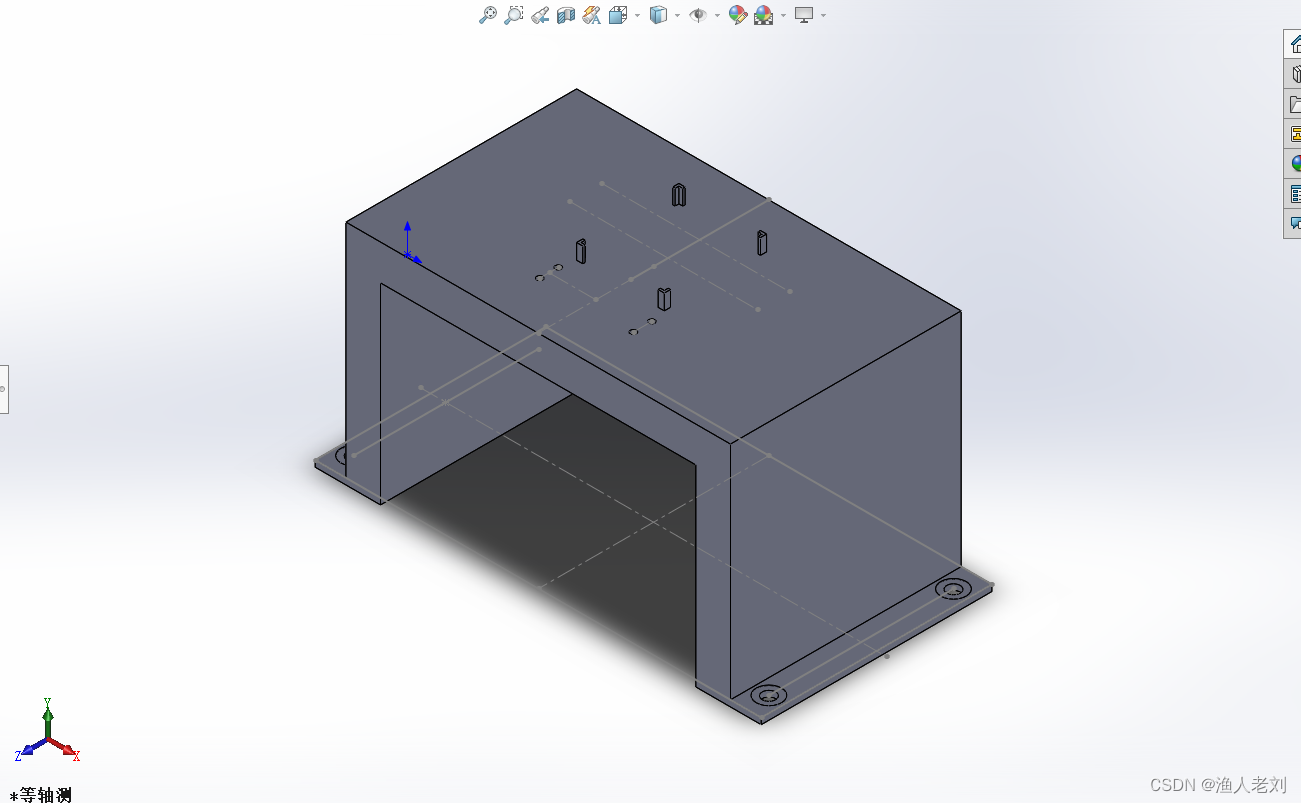 为使光轴保持在同一高度上,设计一小平台用以放置黑体及靶标。平台内部做轻量化处理,下方开有四个小螺纹孔与箱体相连接。上方设计四个小挡角,用以固定黑体,并方便黑体的拿取。平台总高度为296mm,宽500mm,两侧厚度为8mm。