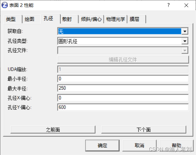 抛物镜参数: