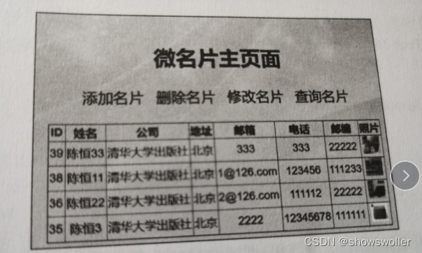 3:成功登录的用户,可以添加,修改,删除以及浏览自己客户的名片信息