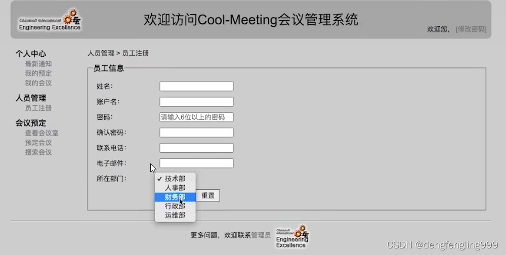 注册页面的部门是从数据库获取的: