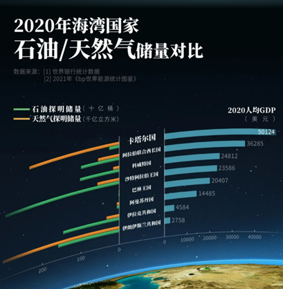 卡塔尔那么小的地方,到底靠什么挣钱?答案就是石油和天然气。要知道世界三大能源,煤、石油、天然气,卡塔尔就占了两个。卡塔尔位于波斯湾西南岸,与沙特阿拉伯和阿拉伯联合酋长国相邻,北面隔波斯湾与科威特,和伊拉克遥遥相望,是典型的热带沙漠气候。虽然沙漠地形听起来不怎么好,但有句话叫“上帝给你关上了一扇门,一定会给你打开另外一扇窗“,卡塔尔在资源方面得到了很大的眷顾。这个总面积仅有1.15万平方公里的国家,储存着丰富的石油和天然气,也算得上是一个低调的能源“大”国。在石油方面,很多人不知道的是,卡塔尔曾经也是OPEC的成员国之一,只不过在2019年退出了,石油资源也不差。据统计,卡塔尔已探明的石油储量位居全球第十三位。而且,产量方面也比较给力。2021年卡塔尔原油日产量为175万桶/日,占全球日产量的2%,位居世界第14。