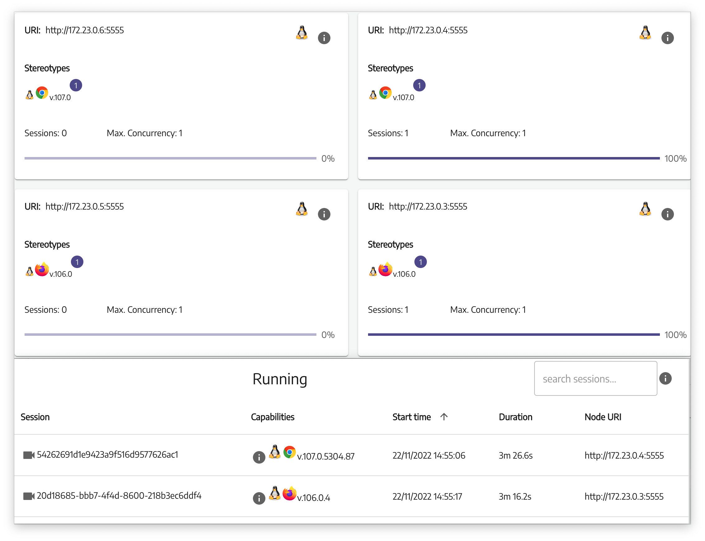 $ docker-compose up -d --scale chrome=2 --scale firefox=2