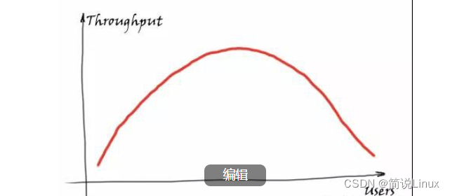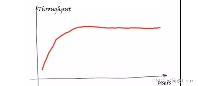 对于数据库整体吞吐而言,则是在资源未耗尽时随着连接数增加,一旦连接数超过了某个耗尽系统资源的临界点,数据库整体吞吐就会随着各连接的资源争抢而下降,如下图所示。