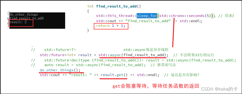 - std::cout << "result2: " << result2.get() << std::endl; // 延迟是否有影响? 阻塞等待find_result_to_add2返回值