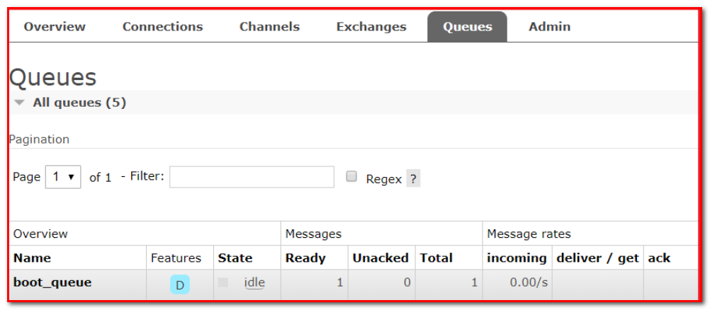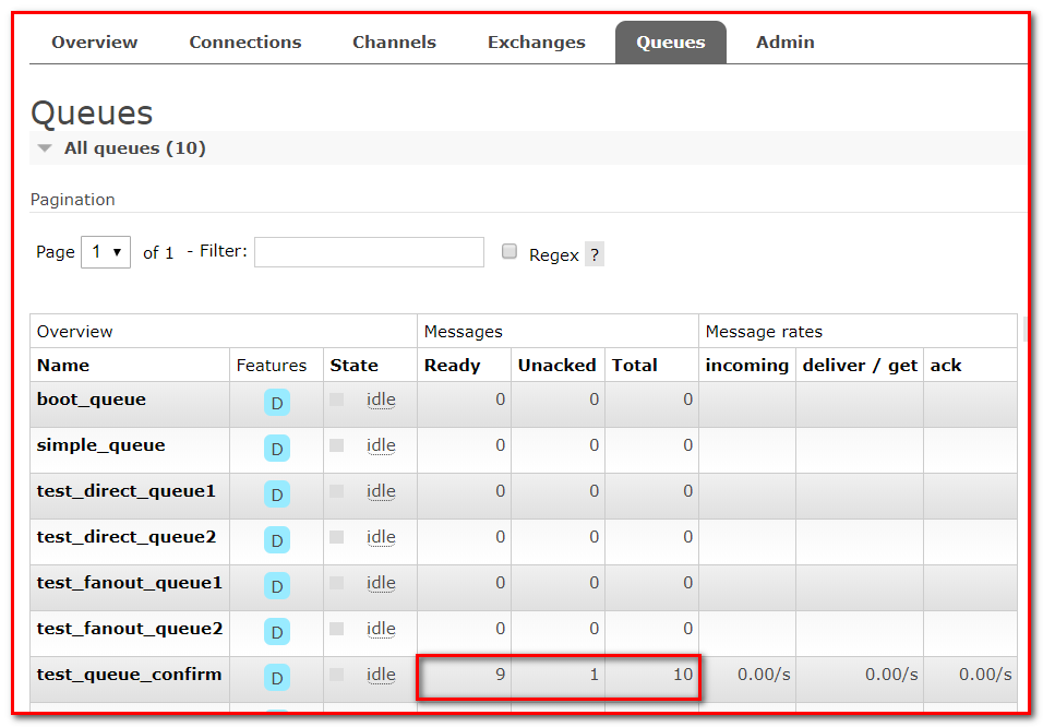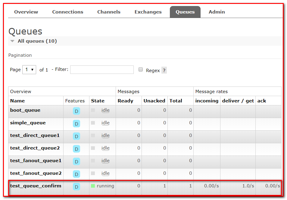 Queue:存储消息的容器,消息最终被送到这里,等待 consumer 取走