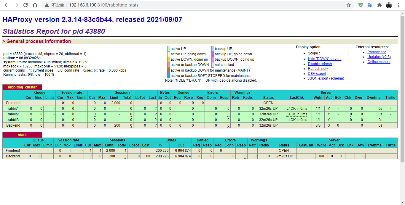 server rabbit2 192.168.6.100:5673 check inter 5000 rise 2 fall 2 weight 1