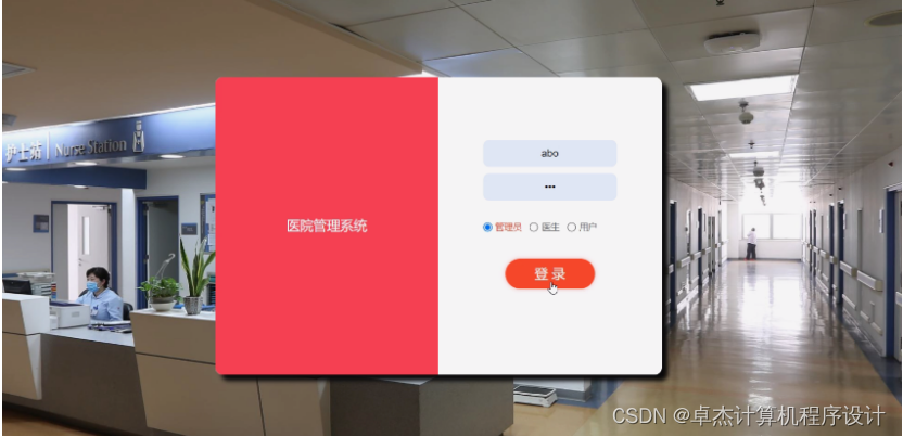 管理员进行登录,进入系统前在登录页面根据要求填写用户名和密码,选择角色等信息,点击登录进行登录操作,如图5-8所示。