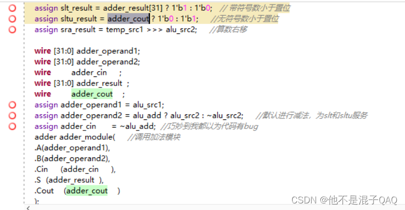 - assign adder_cin = ~alu_add; //巧妙到我都以为代码有bug