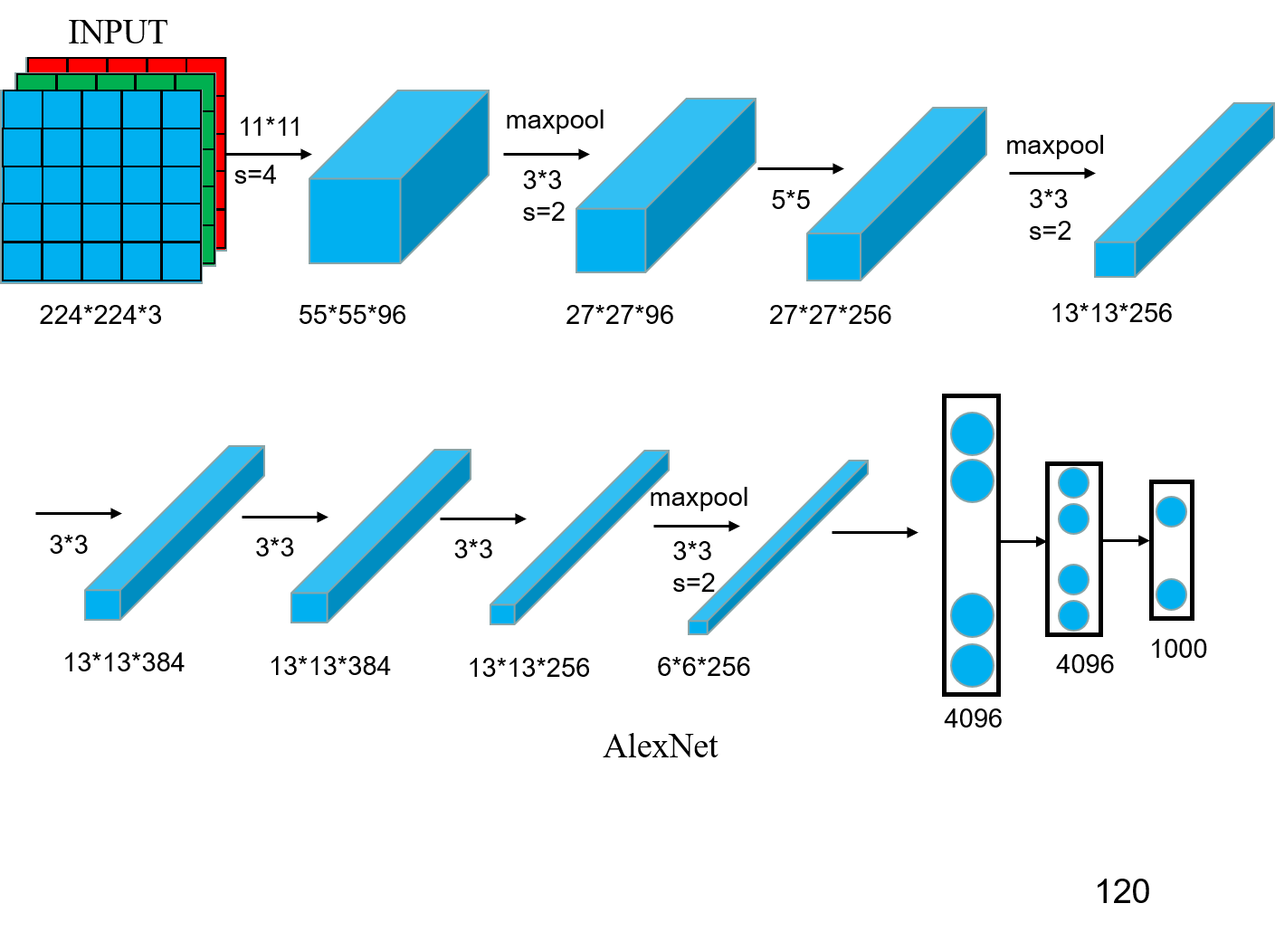 AlexNet 是 2012 年 ISLVRC 2012(ImageNet Large Scale Visual Recognition Challenge) 竞赛的冠军网络, 分类准确率由传统的 70%+ 提升到 80%+。它是由 Hinton 和他的学生Alex Krizhevsky设计的。