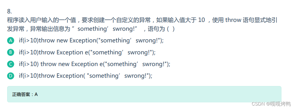 - 异常是类,需要new