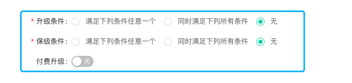 在会员组/运营组设置的这里有关于升级条件,保级条件,付费升级等多个制度等设置大家可以根据自己需要进行配置。