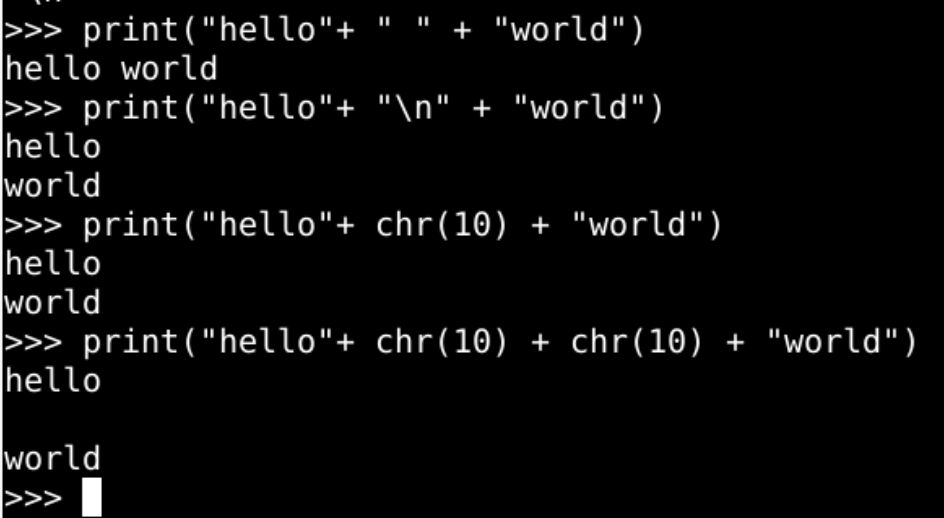 print("hello"+chr(10)+"world")