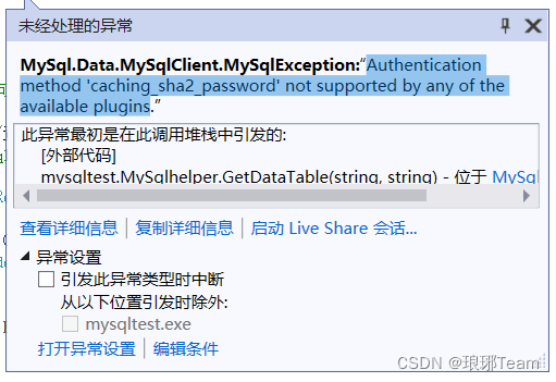 2.Authentication method 'caching_sha2_password' not supported by any of the available plugins
