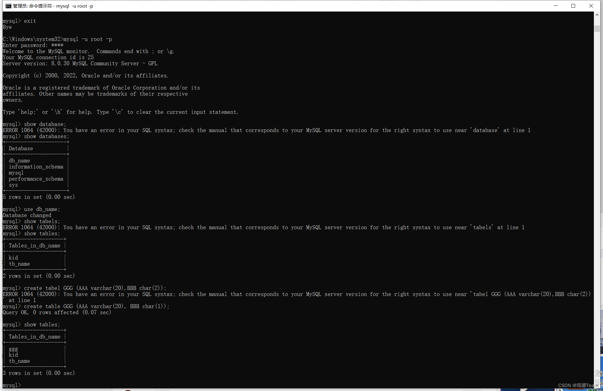 - mysql> create database db_name; -- 创建数据库