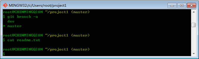 切换回master分支后,再查看一个readme.txt文件,如下图: