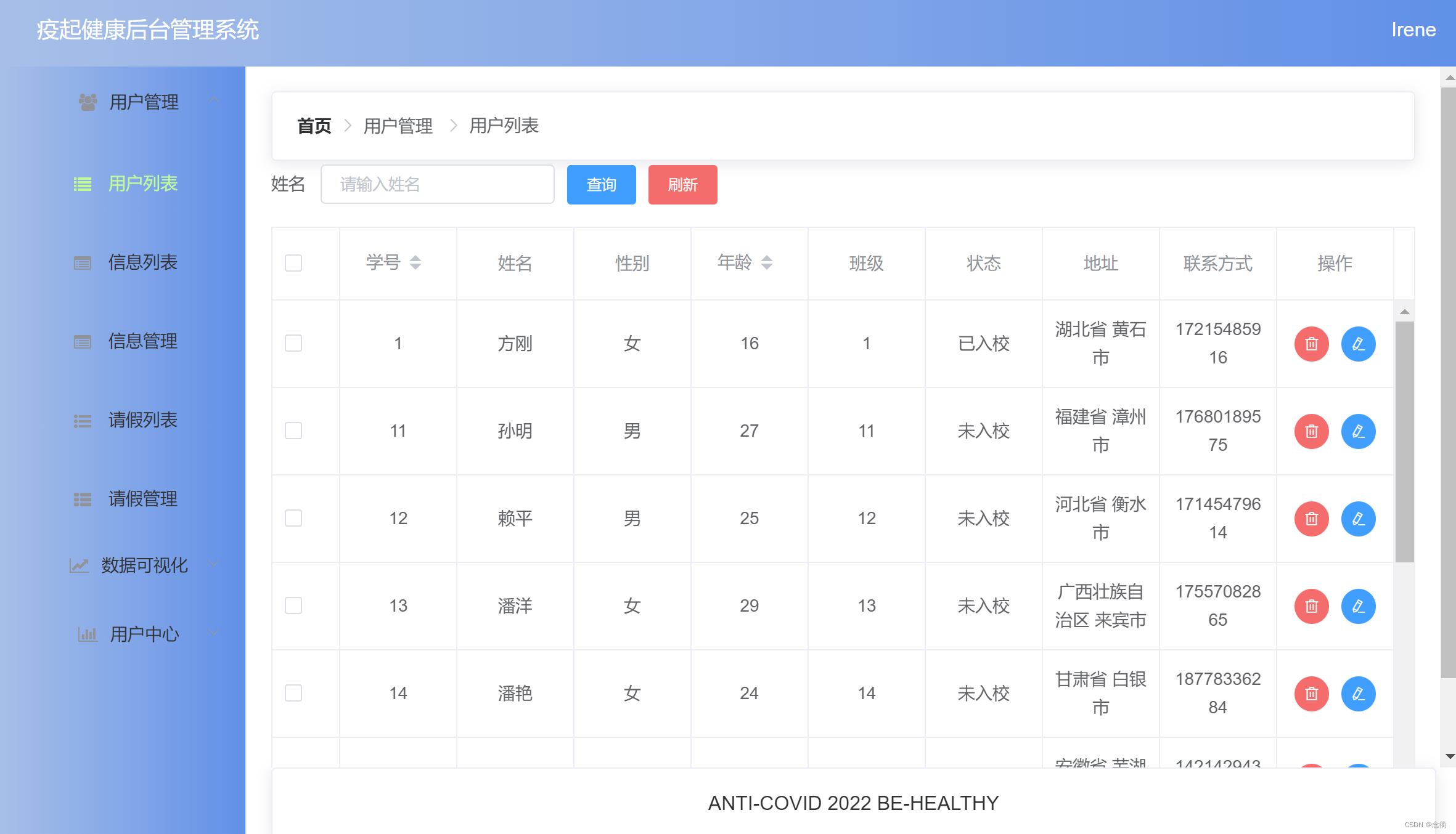 信息列表的条件查询和批删除因为后端没有写,所以这里只有按钮没有真实现。