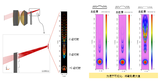 同时具有折射和衍射表面的混合透镜已成为一种极具潜力的解决方案应用于多种领域。在此案例中,我们将演示混合目镜的一个例子,其中利用衍射透镜表面对色差进行了校正。由ZemaxOpticStudio®进行初始化设计,并导入VirtualLab Fusion进行进一步研究。建模可以基于期望的波前相位响应或者考虑实际的衍射表面结构(以连续或量化的方式)进行。
