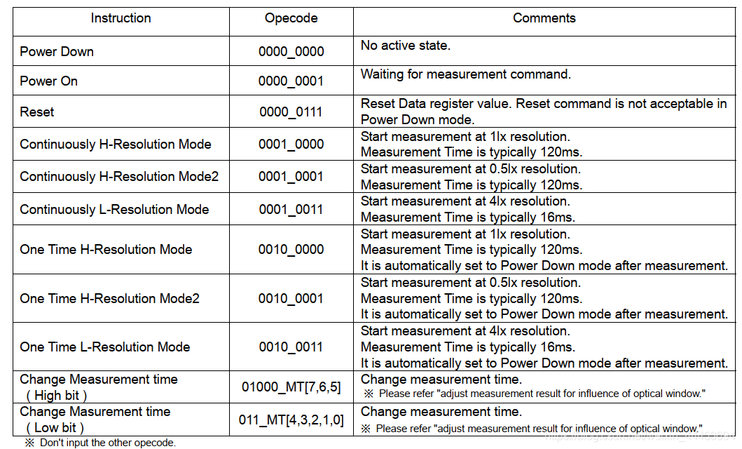 - BH1750_SendByte(REG_Address); //写入指令,内部寄存器地址