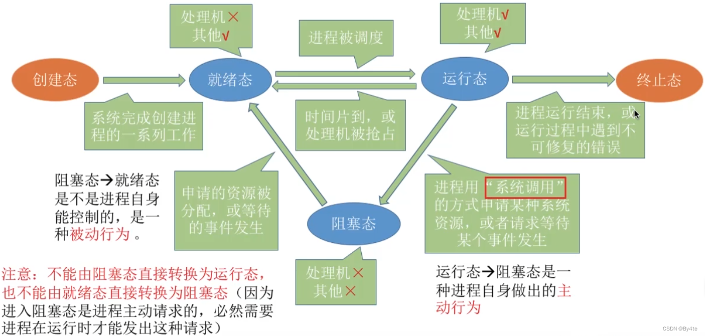 ·低级调度(进程调度):按照某种算法从就绪队列中选取进程,将处理机分配给它。