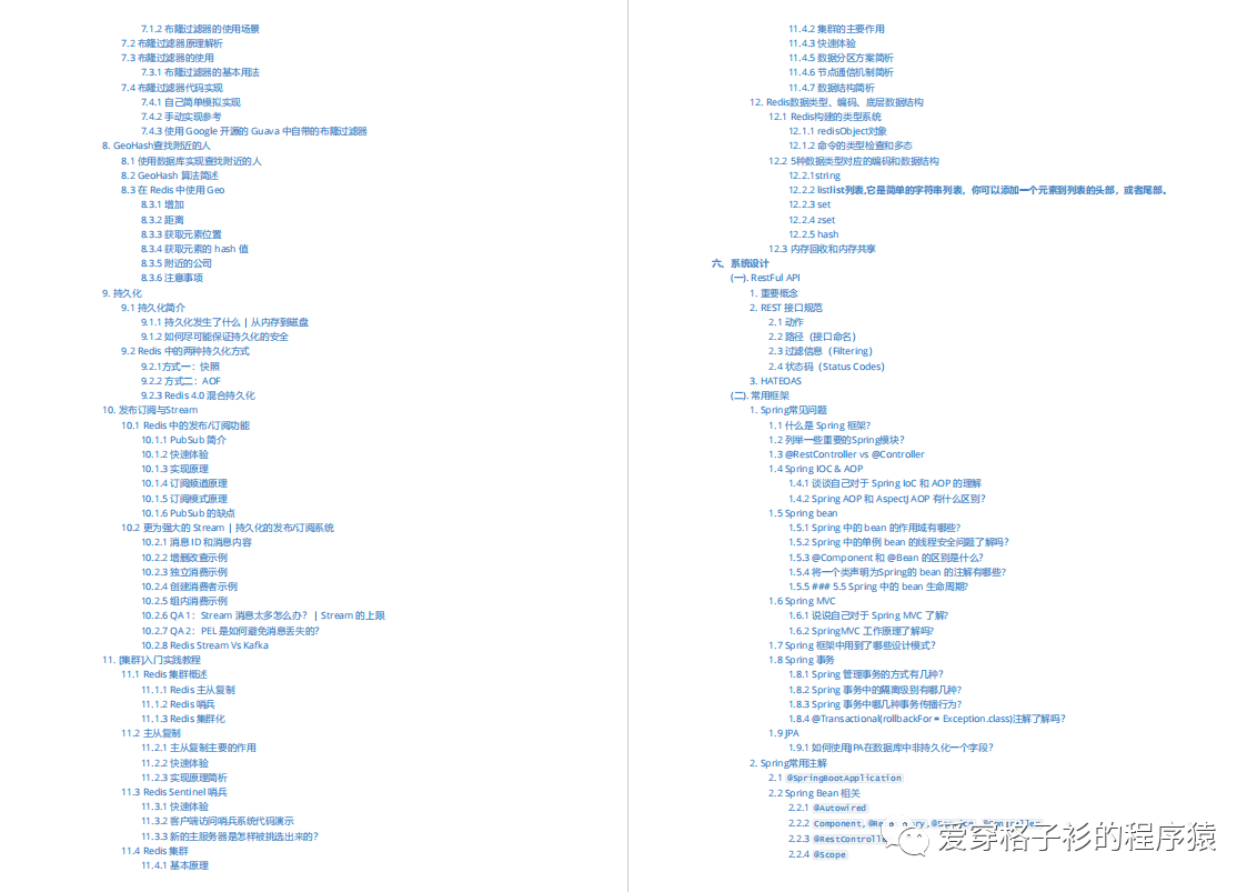 按照不同技术细分,每个中也有多个精选的核心技术知识点,为了看起来直观,我给大家展示部分