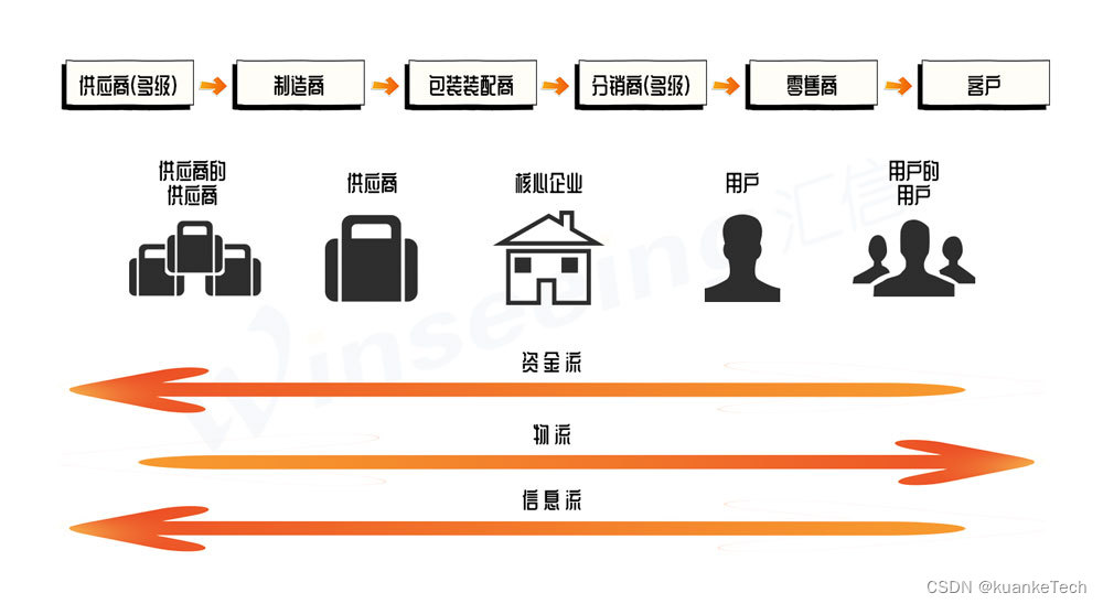 以客户需求为导向,通过整合资源,提高质量和效率,将产品设计、采购、生产、销售、服务等一系列全过程,高效协同所产生的组织形态,就是外贸供应链。通俗的讲,就是产品在生产和流通过程中,会涉及原材料的供应商、生产商、分销商、零售商,以及购买的客户等,将上、下游的角色人员连接组成的网络架构。也就是将物料获取、加工,加工成成品送到购买客户的手中,整个一些列的过程所涉及的企业和企业部门组成的网络架构。