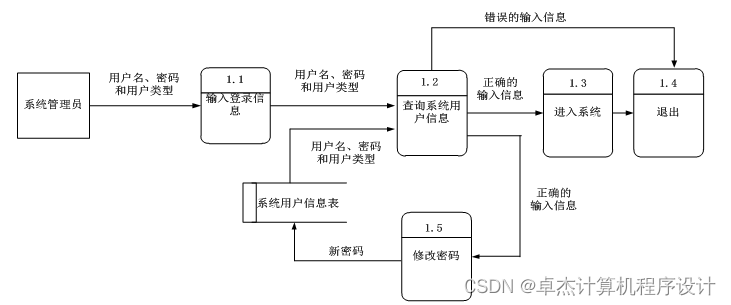 2层为管理员操作后台数据流图,管理员可以分别通过添加、修改和删除来对系统管理员进行管理,如下图所示: