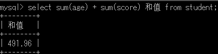 select sum(age) + sum(score) 和值 from student;