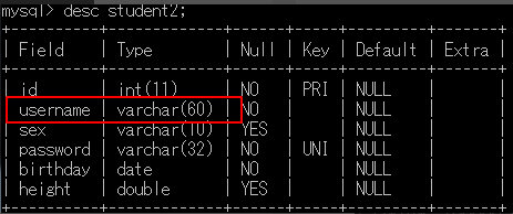 在创建学生的这个数据表的时候,数据表中最少需要定义和Java中Student类中相同的属性(成员变量)。就需要把Java中类的属性和数据库中表的列一一对应,因此我们就需要研究在Mysql数据库中表的每一列的数据类型。