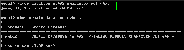 alter database mydb2 character set gbk;