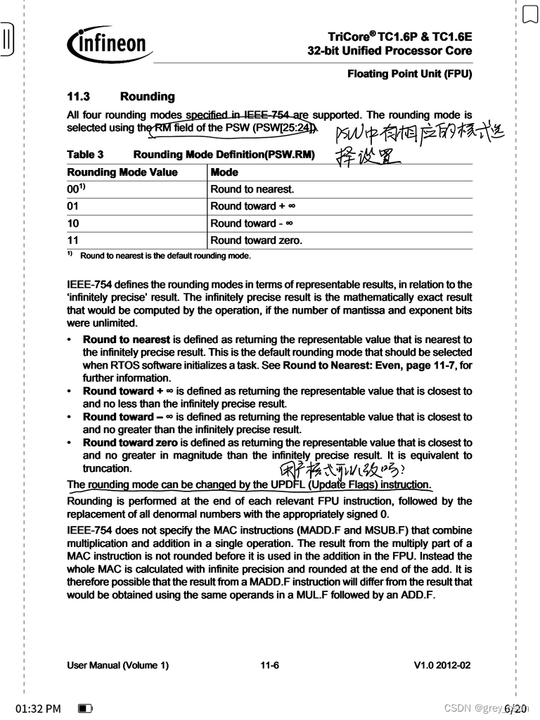 2. 中间有一个笔记的标注写错了,应该是:从FPU的角度来看其实是看不到精度损失的,因为有一个替换为0的机制存在。