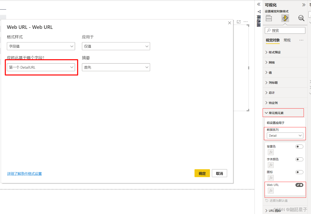 3. 将Detail字段的Web URL开关打开,选择Web URL的字段值:DetailURL