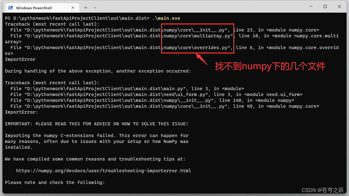 我们使用黑窗口打开刚刚打包好的main.exe