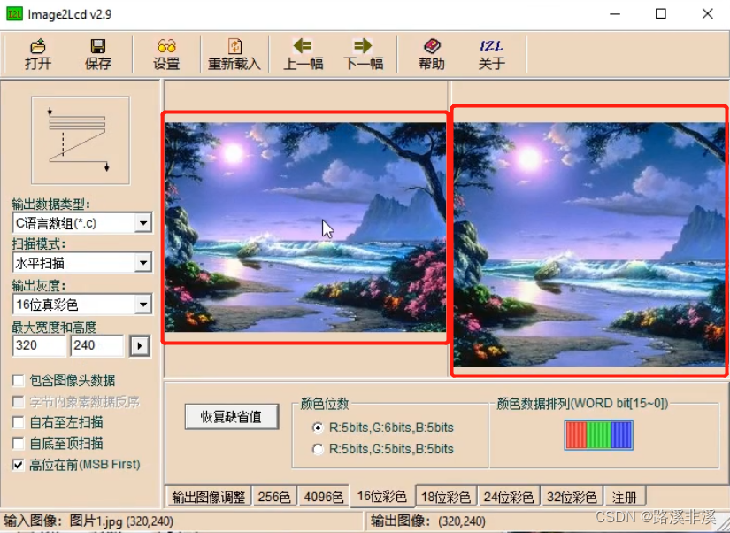 PCtoLCD也能给图片取模,但是只能取黑白色,也就是亮和不亮,反正就是无法实现效果,所以一般不会使用这个来取图片的模。