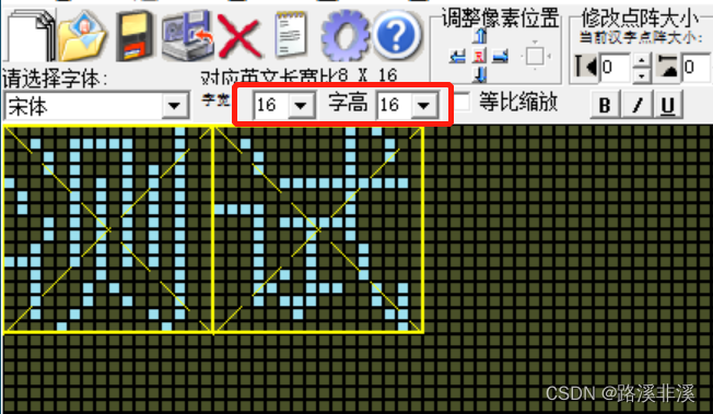 比如,如果英文字体的大小要求是7*16,那么取模的时候,尺寸就要设置成14*16