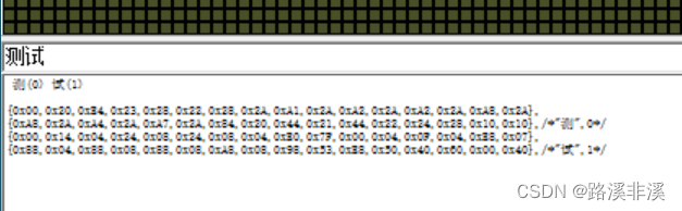 每行显示数据-点阵:这个就是生成的模分几行显示,比如测试的测,一共32个字节,每行8个字节,就会分4行显示;每行16个,就分2行显示;每行32个,就直接1行显示。不影响软件编程。索引没啥用,不用管。