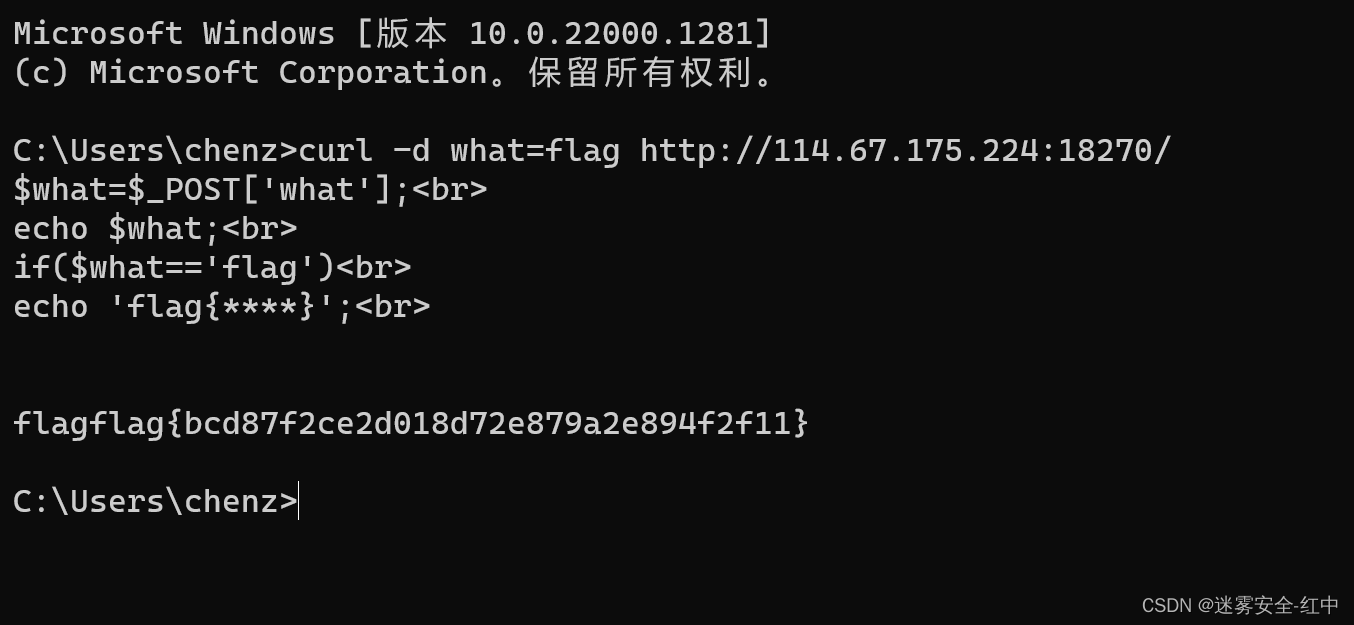 正常就是通过post传递一个what=flag的参数进去,可以通过hackbar来实现