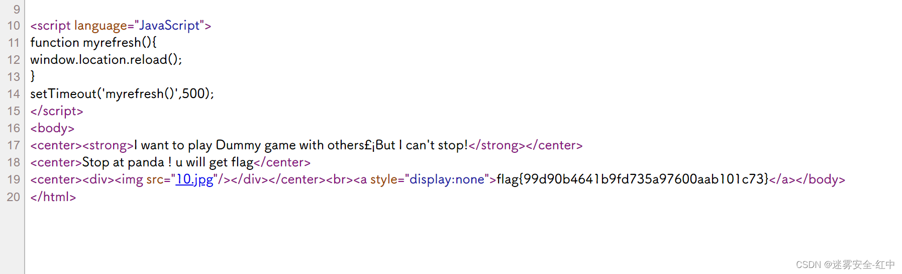 简单描述一下,这是个不断刷新的网页,只有当图片成功刷出来的时候我们才有机会获得flag,有的师傅直接抓包上了,没必要