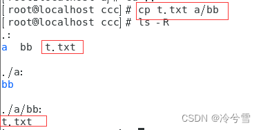 我们将ccc目录下的t.txt复制到a/bb目录下