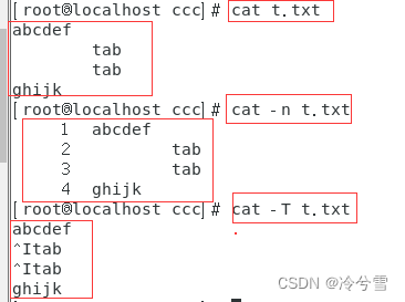 -T 或 --show-tabs: 将 TAB 字符显示为 ^I。