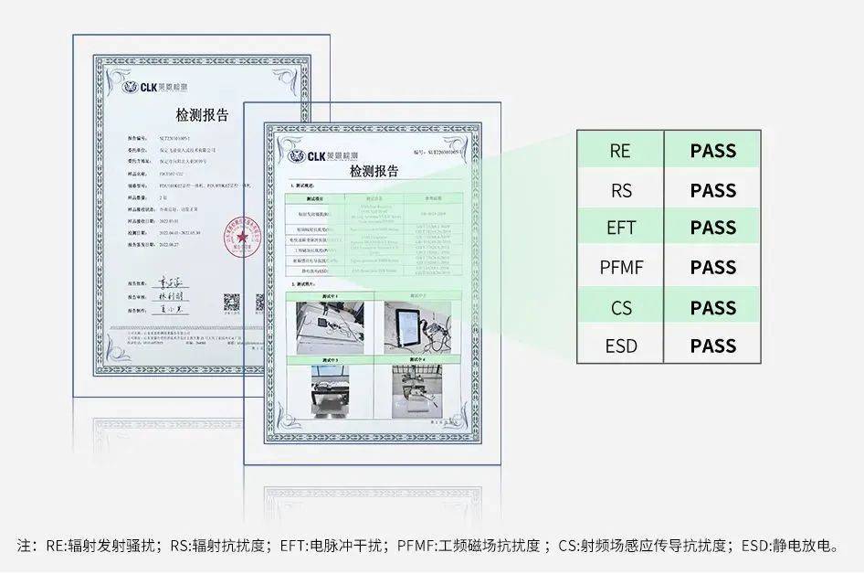 经由第三方机构检验,产品已通过RE、ES、EFT、PTMF、CS、ESD等多项认证测试,让您的设备无惧EMC电磁兼容认证,让产品更加稳定可靠。